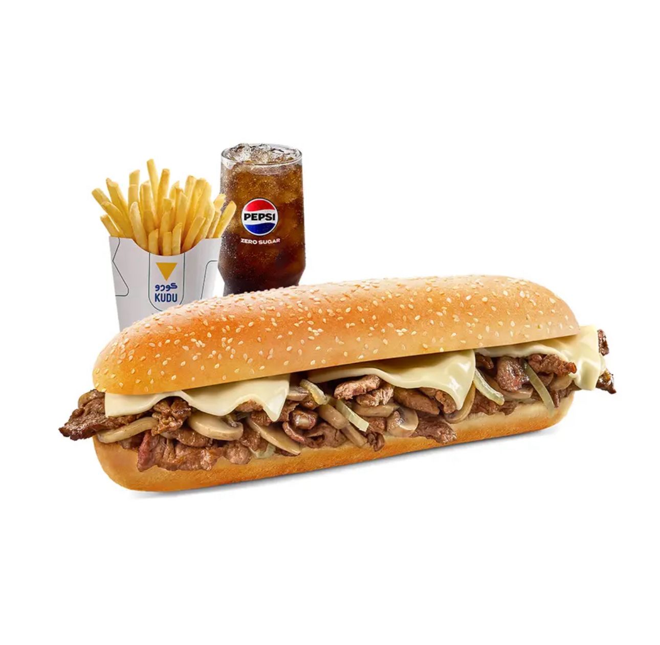 The famous philly grilled beef fillet, sauteed mushroom & onions with melted whi...